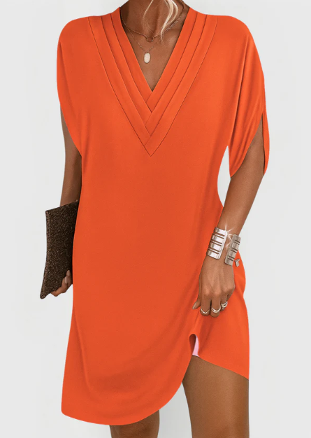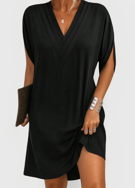 Un abito che unisce modernità e grazia, avvolgendo la figura in un equilibrio di stile e comfort.
